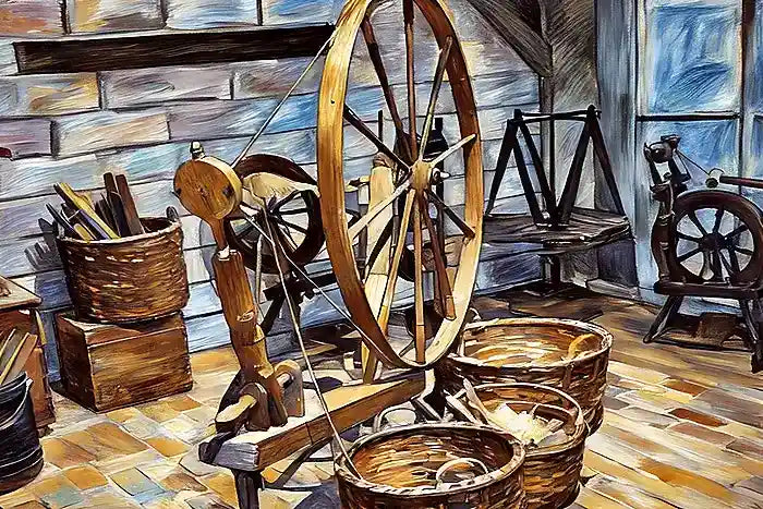 Das Spinnrad kam erst viel später hinzu: Wahrscheinlich entstand es im 11. bis 13. Jahrhundert in Indien und im arabischen Raum und verbreitete sich über Handelswege nach Europa. Damit wurde das Spinnen deutlich effizienter und blieb bis zur industriellen Revolution ein zentrales Handwerk. Heute erlebt es als kreatives Hobby und Ausdruck von Tradition und Achtsamkeit eine neue Wertschätzung.